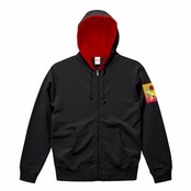 Cutting Edge フルジップパーカーは、ブラックとレッドのコントラストが鮮やかな一着です。裏地に施された赤のデザインが、さりげなくアクセントを与え、シンプルながらも個性的な印象を与えます。最先端のグラフィックがプリントされたデザインは、他にはないオリジナリティを演出しています。